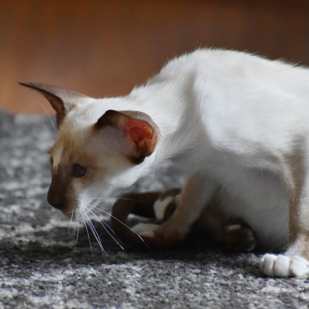 Mjauääuåauu skrek Biscuit och for upp ur mitt knä! Ner på golvet ilade hon omkring. In kom vår intet ont